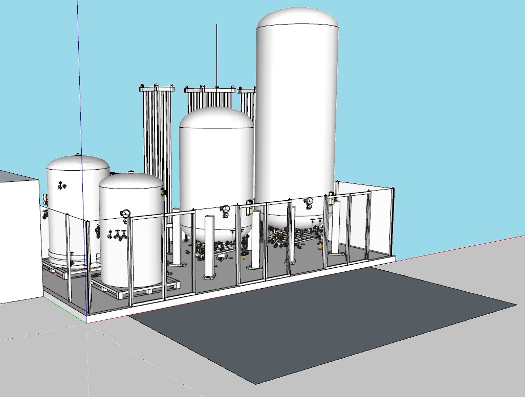 - Skladování zkapalněných plynů, odpařování a rozvody technických plynů
